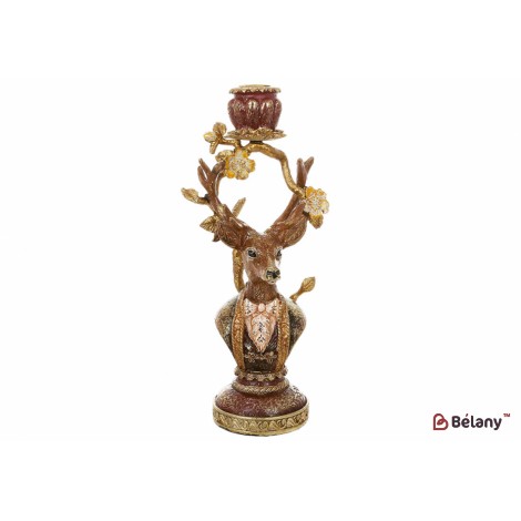 Декоративный подсвечник Олень (свеча d=23мм) с золотой талью, 13.5*10.5*30.5см