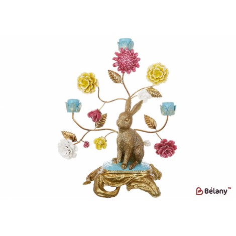 Декоративный подсвечник Заяц с цветами (свеча d=23мм), 29.5*15.5*36.5см