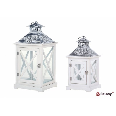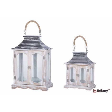 Набор подсвечников Фонарь 2шт, 41см, 30см, цвет - белый с патиной