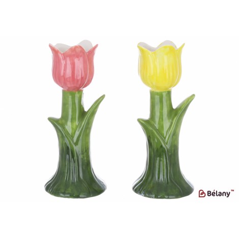 Подсвечник керамический Тюльпан d7*17см, асс 2х цветов - розовый и желтый