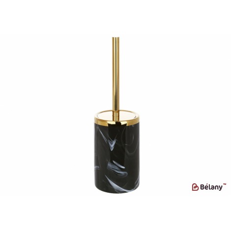 Ершик для унитаза с подставкой, дизайн – черный мрамор с золотом.