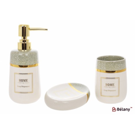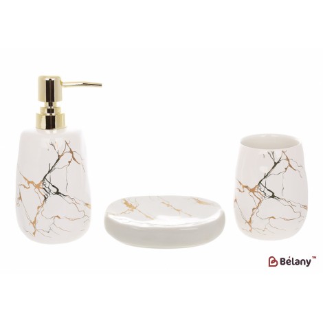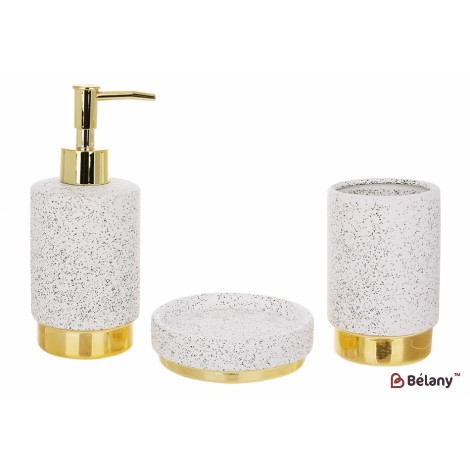 Набор для ванной (3 предмета): дозатор 350мл, стакан, мыльница, дизайн – белый гранит с золотом.