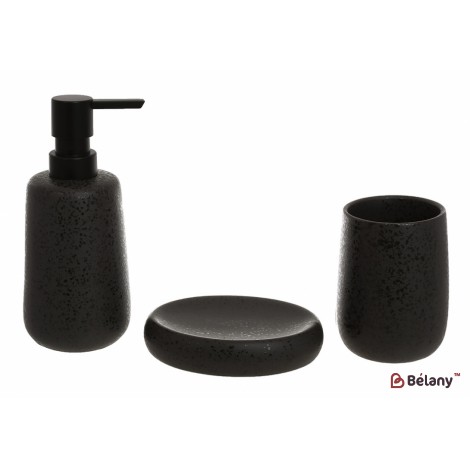 Набор для ванной (3 предмета): дозатор, стакан, мыльница, дизайн - черный матовый с глянцевой каплей