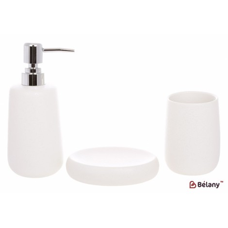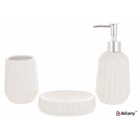 Набор для ванной (3 предмета): дозатор, стакан, мыльница, дизайн - матовый белый с глянцевым нанесением