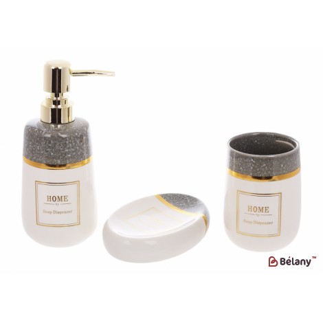 Набор для ванной home (3 предмета): дозатор, стакан, мыльница, цвет - белый с серым