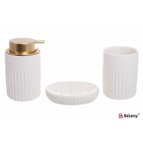 Набор для ванной комнаты (3 предмета) дозатор для мыла, стакан для зубных щеток и мыльница, дизайн - молочный белый