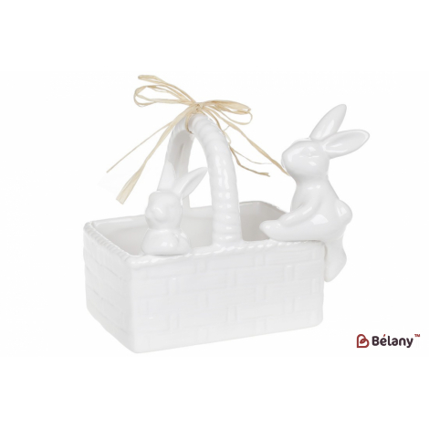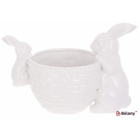 Кашпо (сахарница) кролики в корзинке 16 см " magnificence", белый