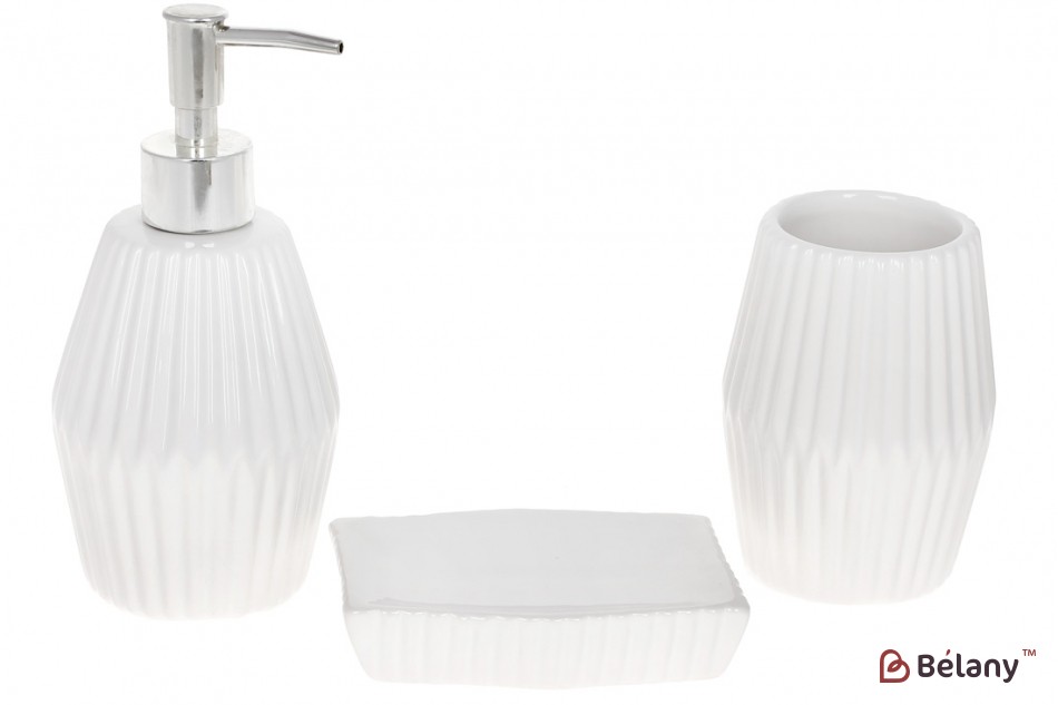 Набор для ванной (3 предмета): дозатор 350мл, стакан зубных щеток 350мл, мыльница, цвет - белый
