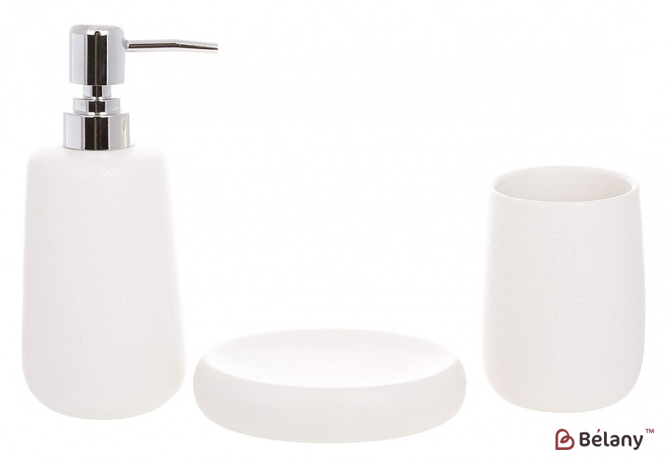 Набор для ванной (3 предмета): дозатор, стакан, мыльница, дизайн - матовый белый с глянцевым нанесением