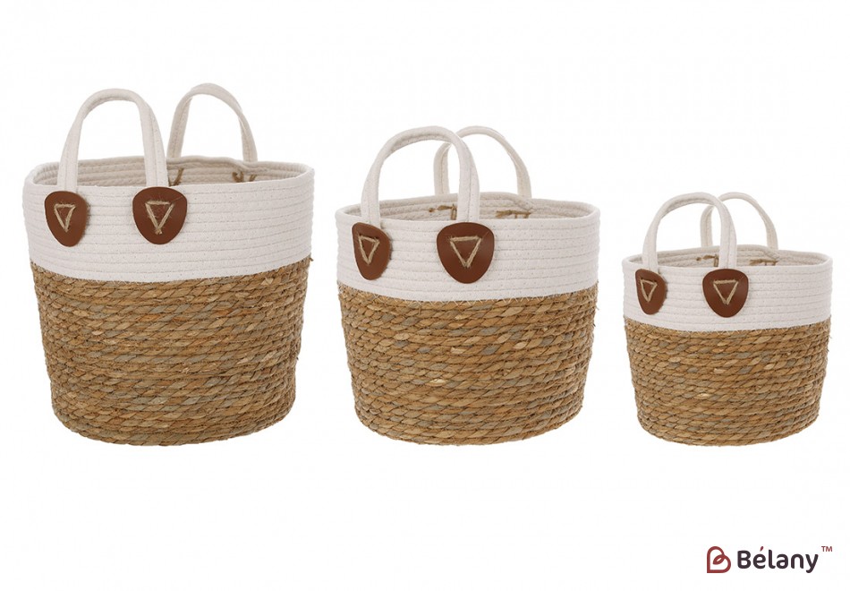 Набор плетеных корзин с ручками (3шт) для хранения, размер: 26*25*18см. 30*28*23см, 33*32*27см