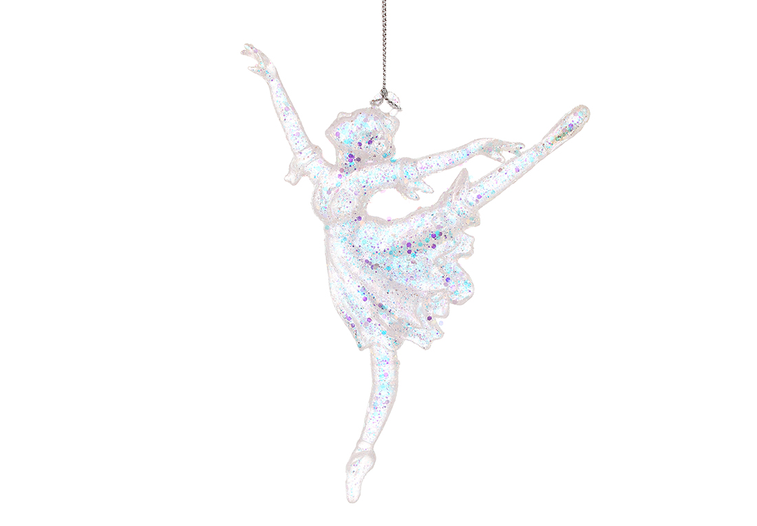Акрилова прикраса Балерина 14.5см, колір - прозорий з блискітками