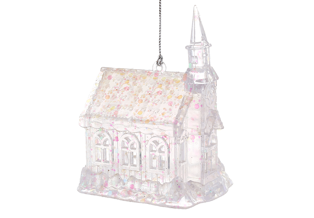 Акрилова прикраса Будиночок 10см, колір - прозорий з блискітками