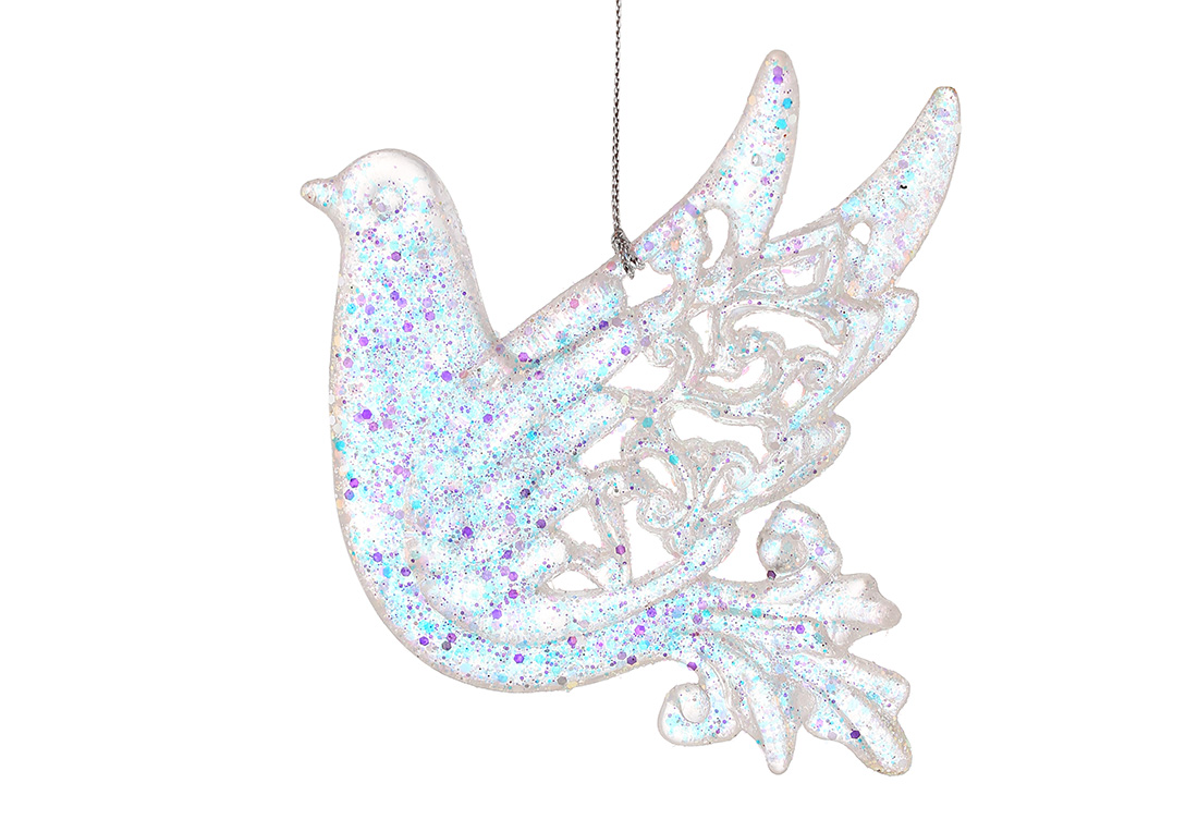 Акрилова прикраса Голуб 12см, колір - прозорий з блискітками