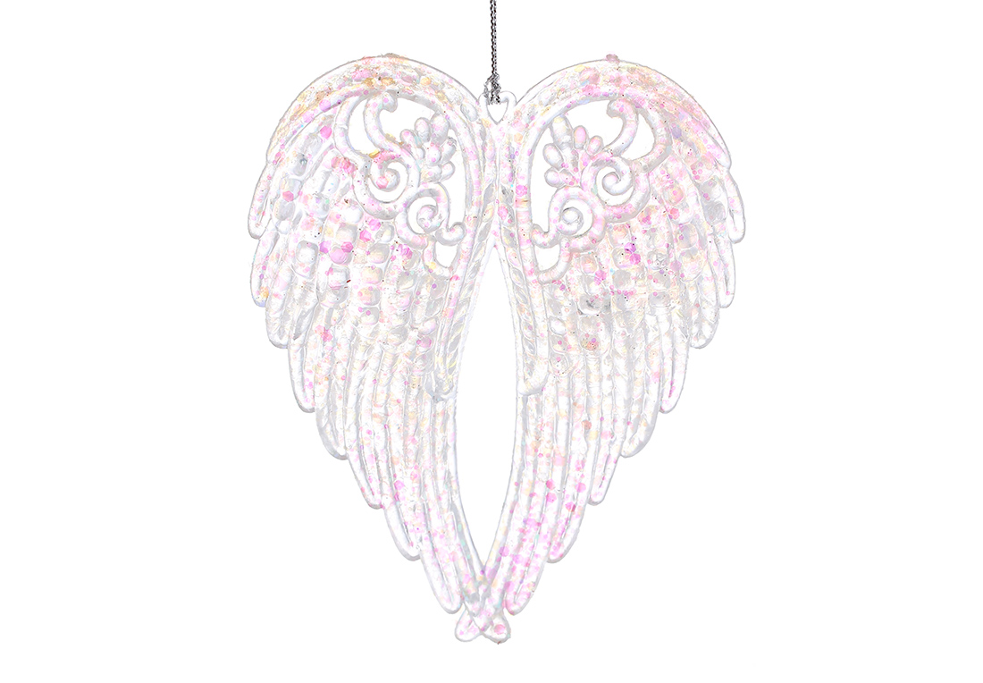 Акрилова прикраса Крила 14.5см, колір - прозорий з блискучими райдужними