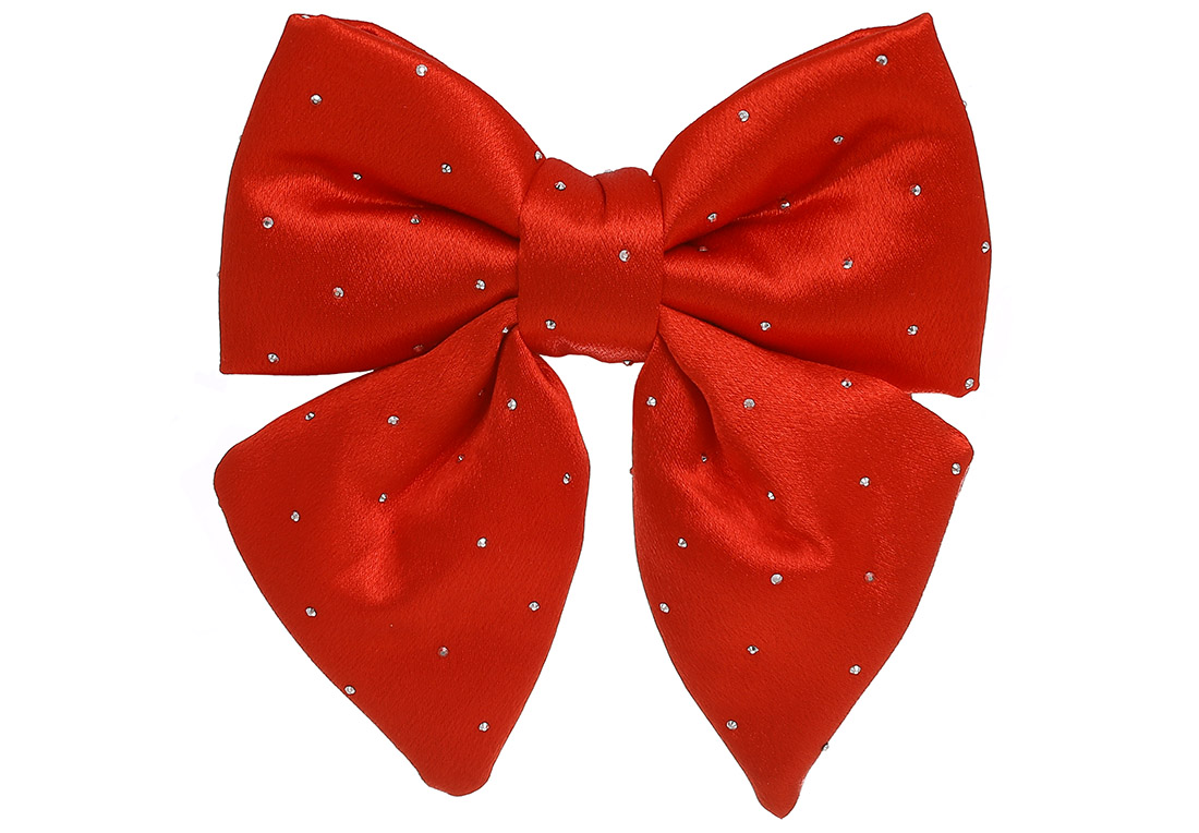 Атласний бант зі стразами 16см, колір - червоний