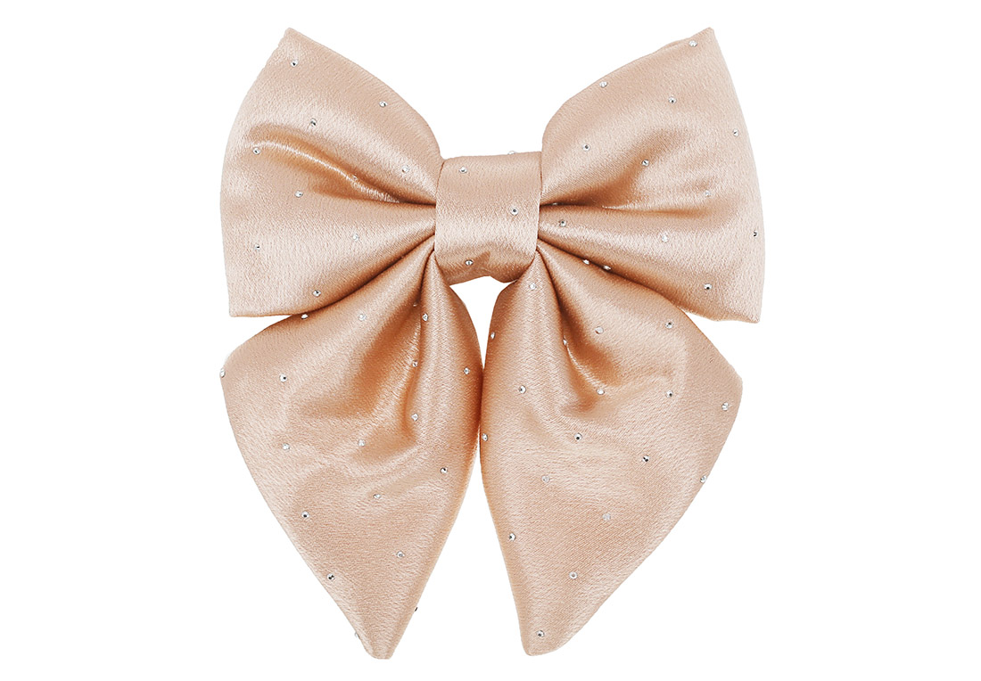 Бант декоративний атласний зі стразами 13см, колір - карамель