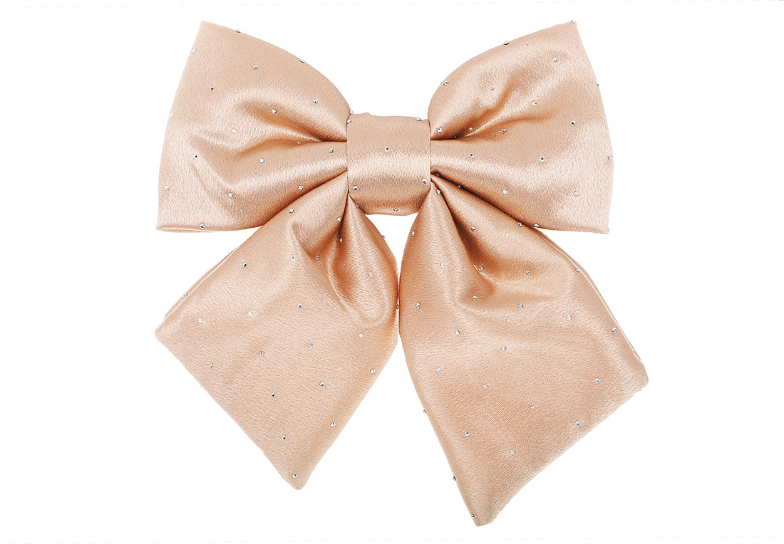 Бант декоративний атласний зі стразами 16см, колір - карамель