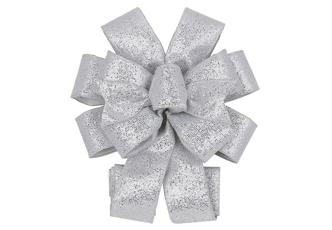 Бант декоративний з глітером, 28*79см, колір - срібло