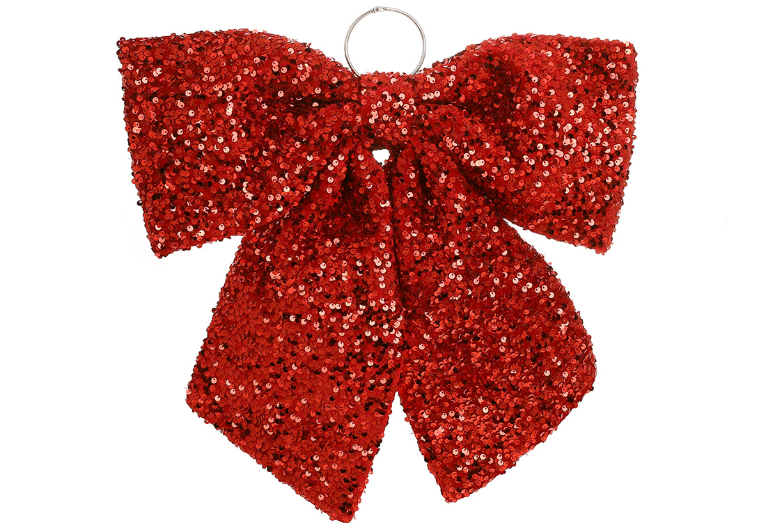 Бант із декором із паєток 34см, колір - червоний