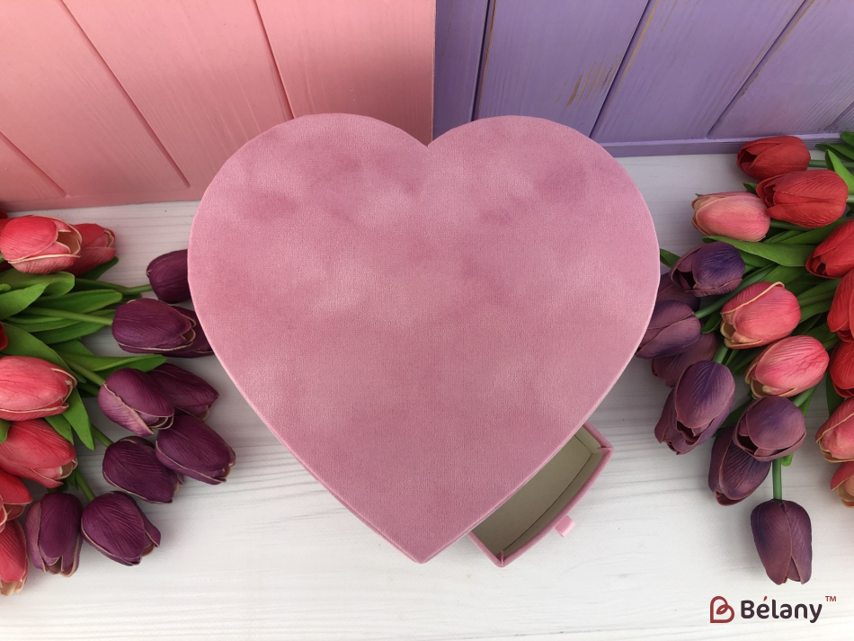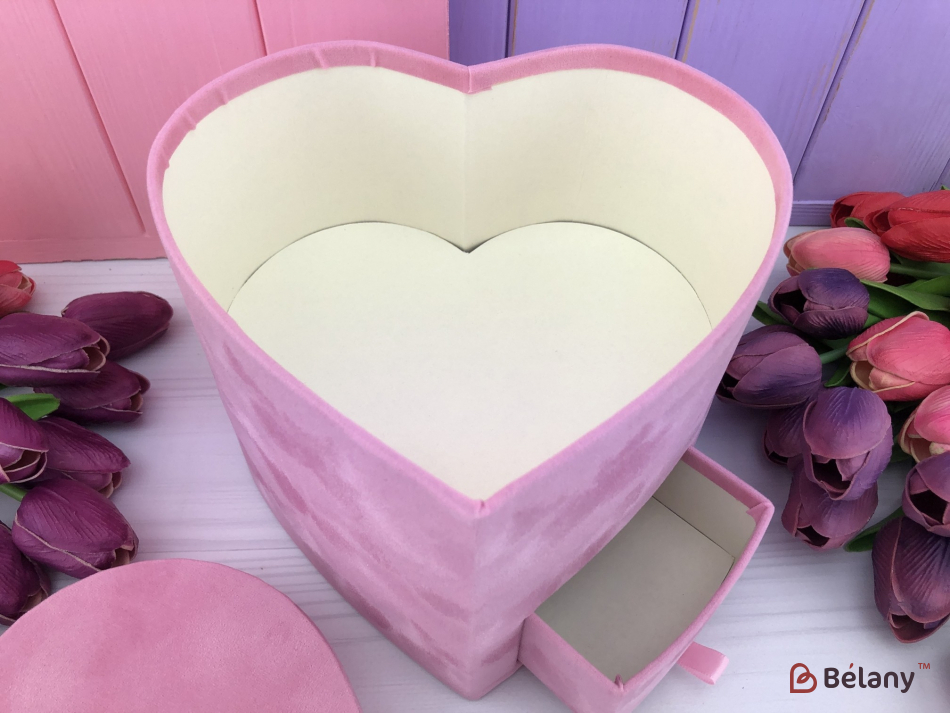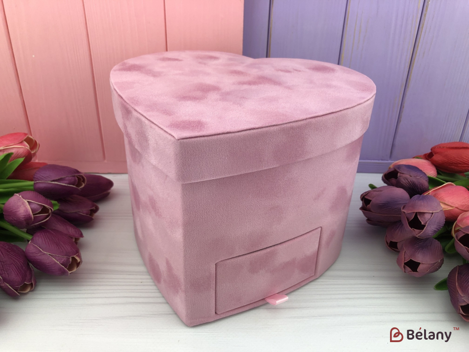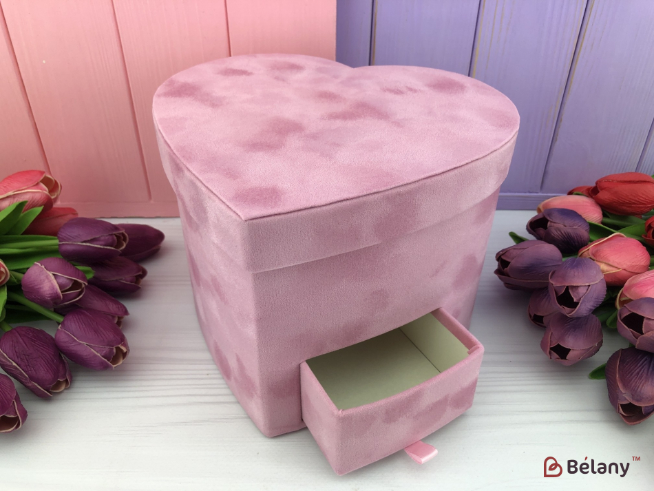 Бархатная коробка в форме сердца "Со шкатулкой" розовая