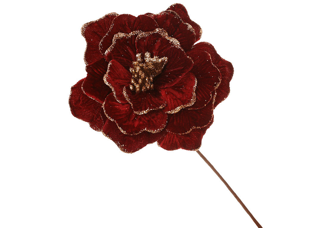 Оксамитова квітка Камелія D24см, ніжка 51см, колір - бордо