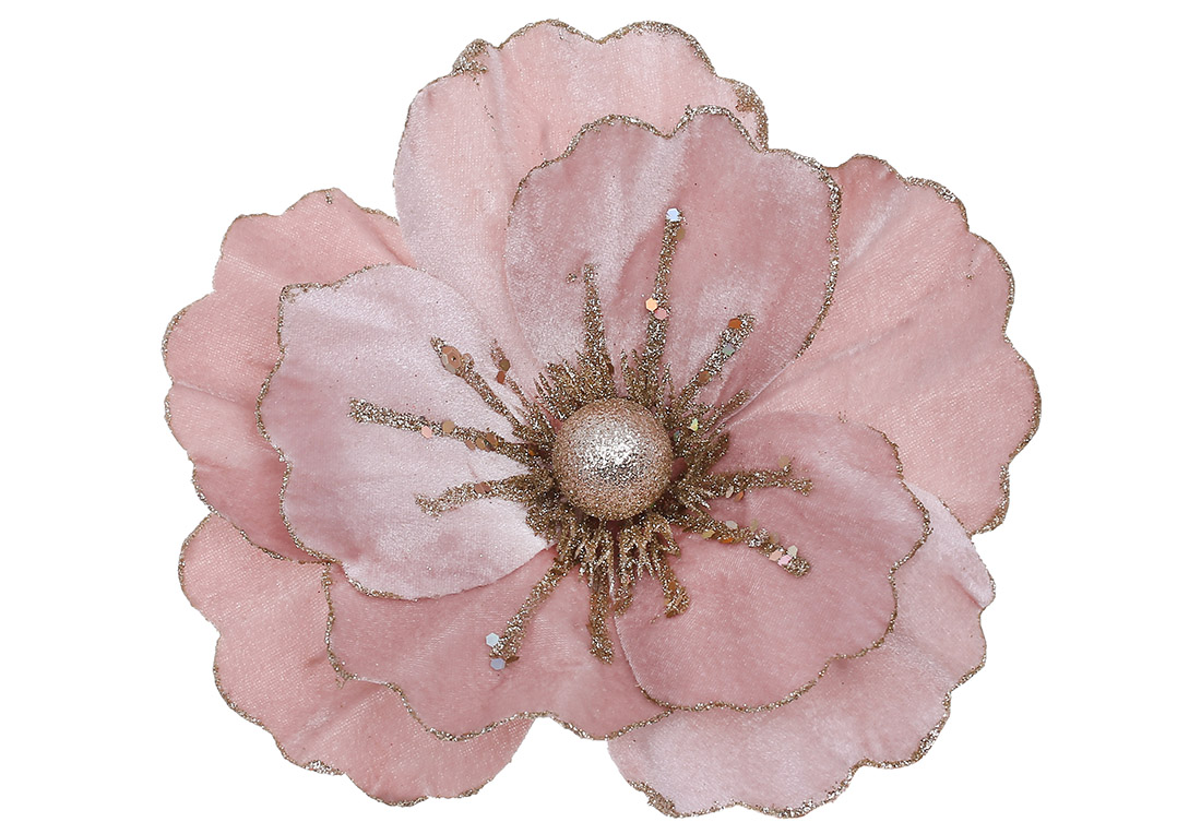Оксамитова квітка Камелія з гліттером 21см, колір - пудровий
