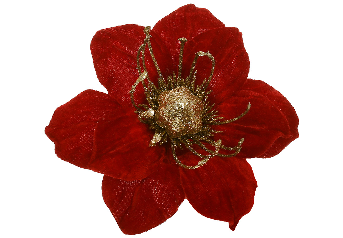 Оксамитова квітка Магнолія 20см, колір - червоний із золотим гліттером