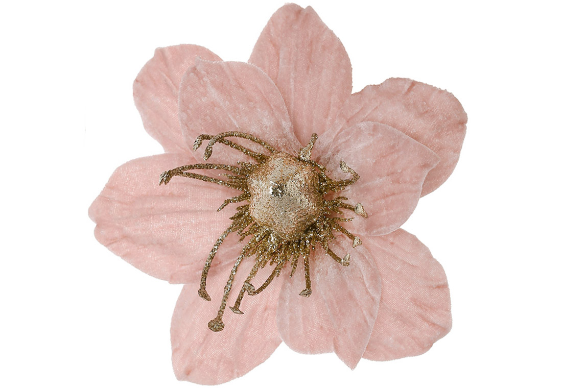 Оксамитова квітка Магнолія 20см, колір - рожевий з гліттером