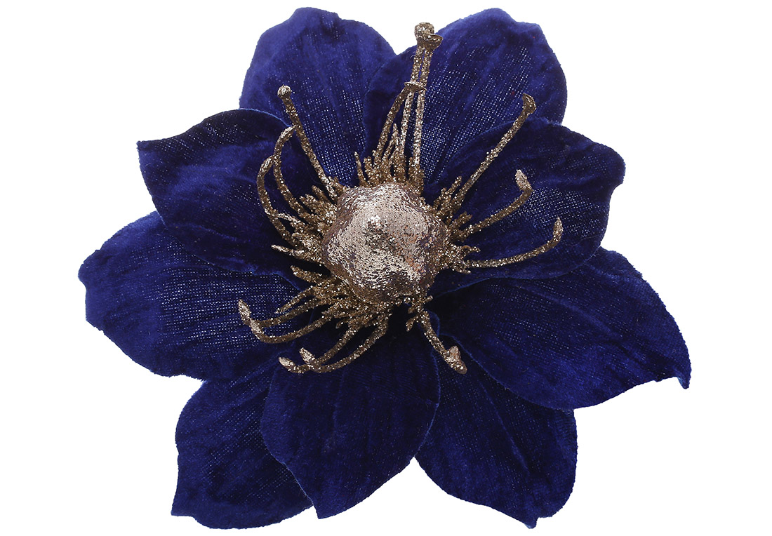 Оксамитова квітка Магнолія 20см, колір - синій з гліттером