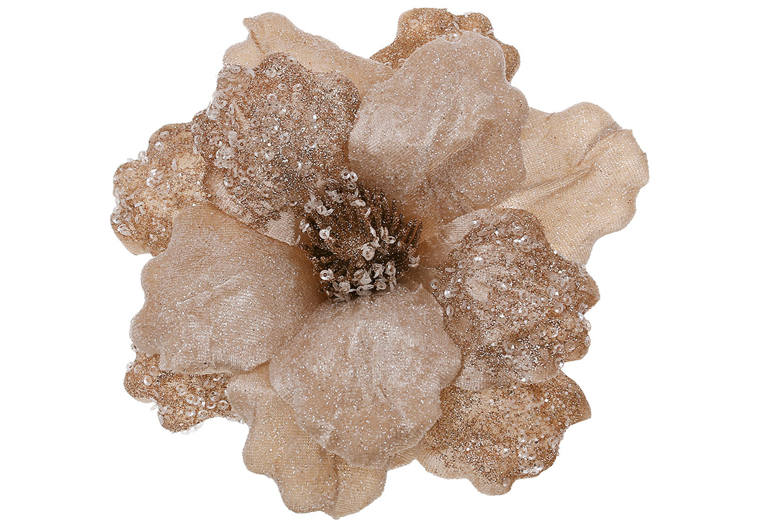 Оксамитова квітка Магнолія з декором з бісеру 21см, колір - бежевий
