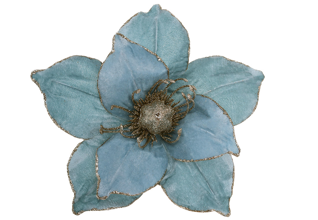 Оксамитова квітка Магнолія з гліттером 24см, колір - блакитний