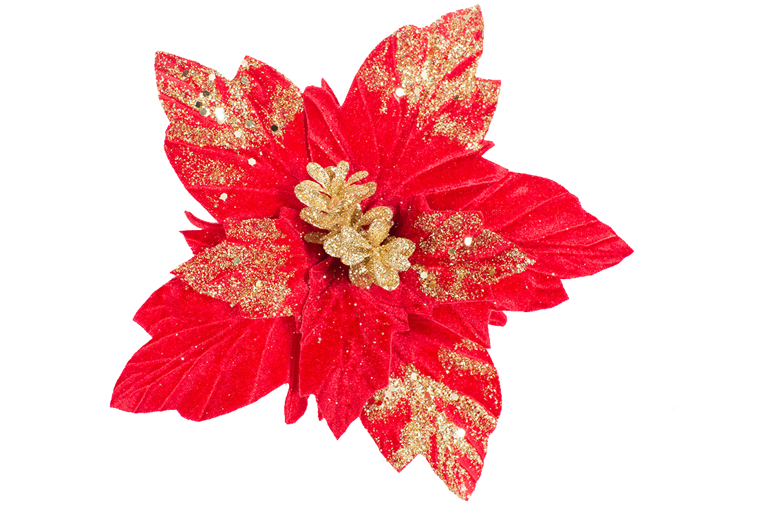Оксамитова квітка Пуансеттія D26см, колір - червоний із золотим гліттером