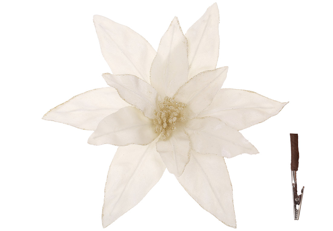 Оксамитова квітка Пуансетія на кліпсі D36см, колір - кремовий