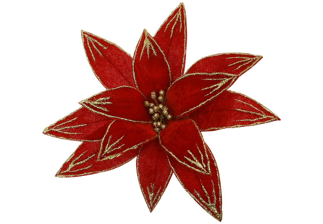 Оксамитова квітка Пуансетія з гліттером 34см, колір - червоний з золотом