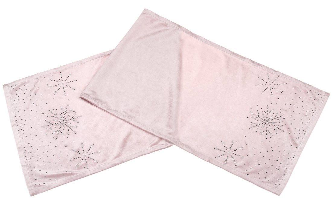 Оксамитовий раннер для святкового оформлення столу зі стразами, 140см, колір - блідо-рожевий