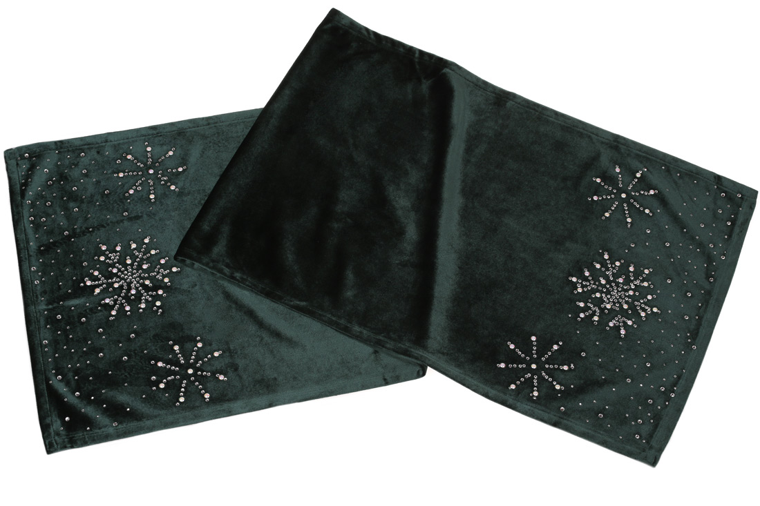 Оксамитовий раннер для святкового оформлення столу зі стразами, 140см, колір - класичний зелений