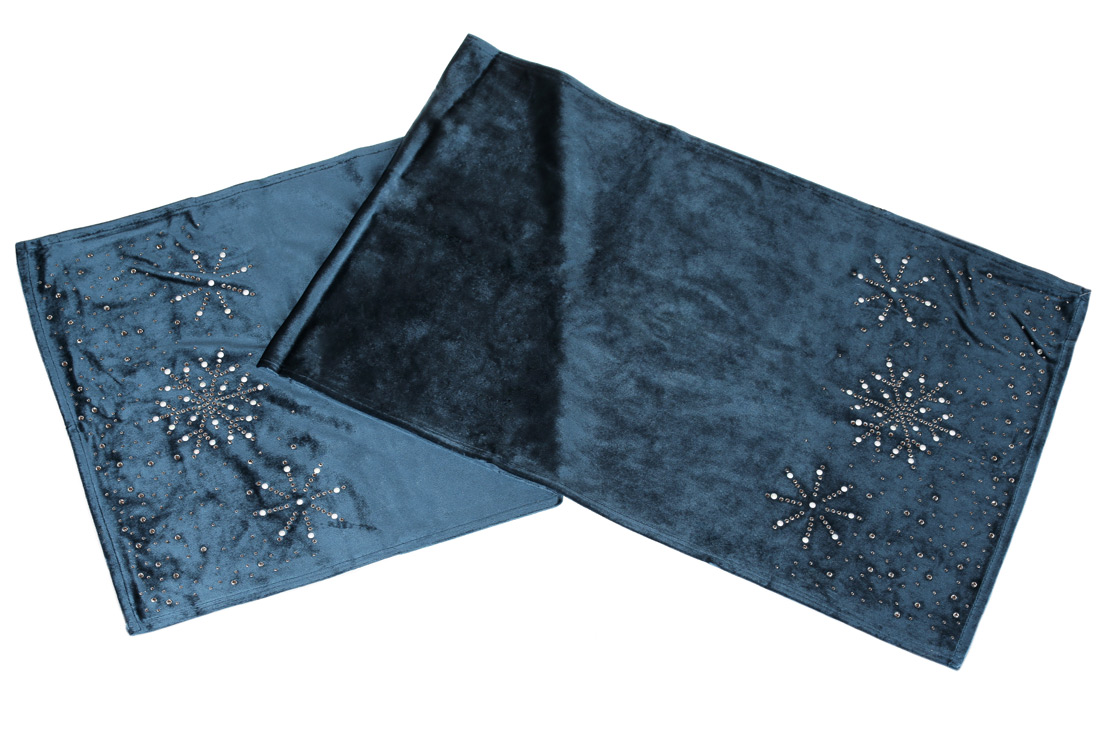 Оксамитовий раннер для святкового оформлення столу зі стразами, 140см, колір - нічний синій