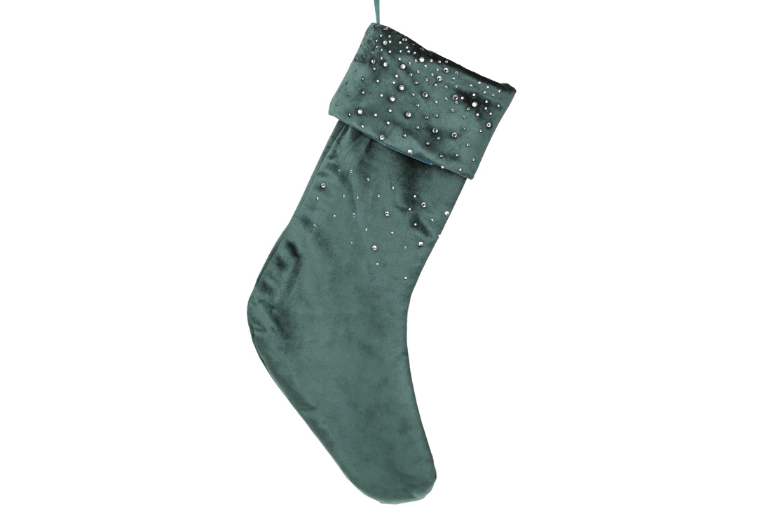 Оксамитовий чобіток для подарунків зі стразами, 45см, колір - класичний зелений