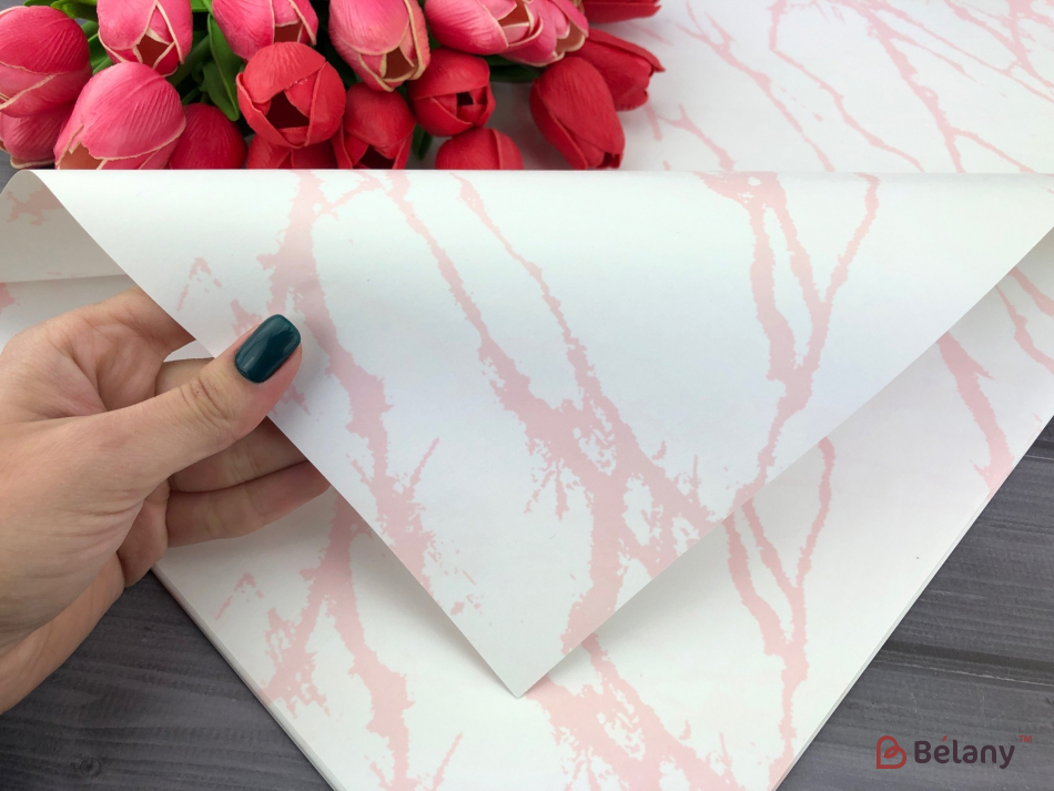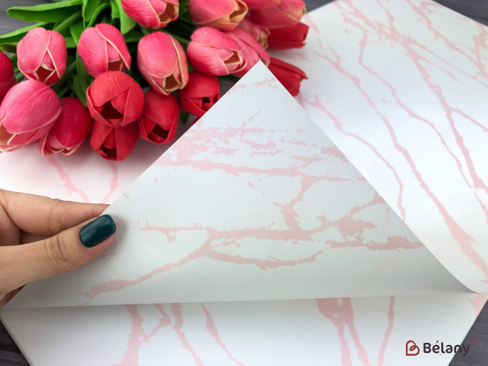 Hârtie Pentru Flori „Marmură” Alb-Roz