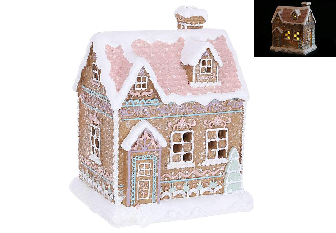 Декор з полістоуну з LED підсвічуванням Пряничний Будиночок 12.5*9.5*15.5см