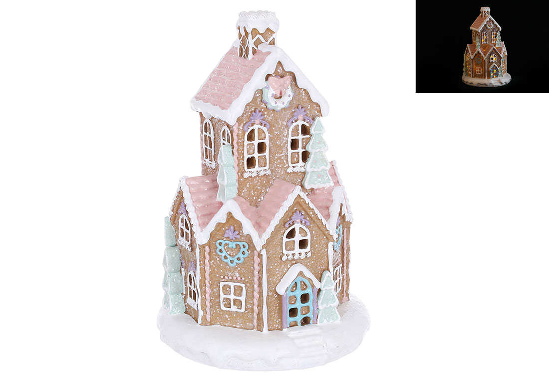 Декор з полістоуну з LED підсвічуванням Пряничний Будиночок 14.5*14.5*23см