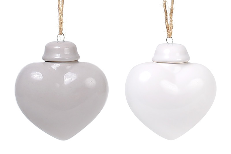 Декор на ялинку Серце 6.5см, 2 кольори мікс - білий, сірий