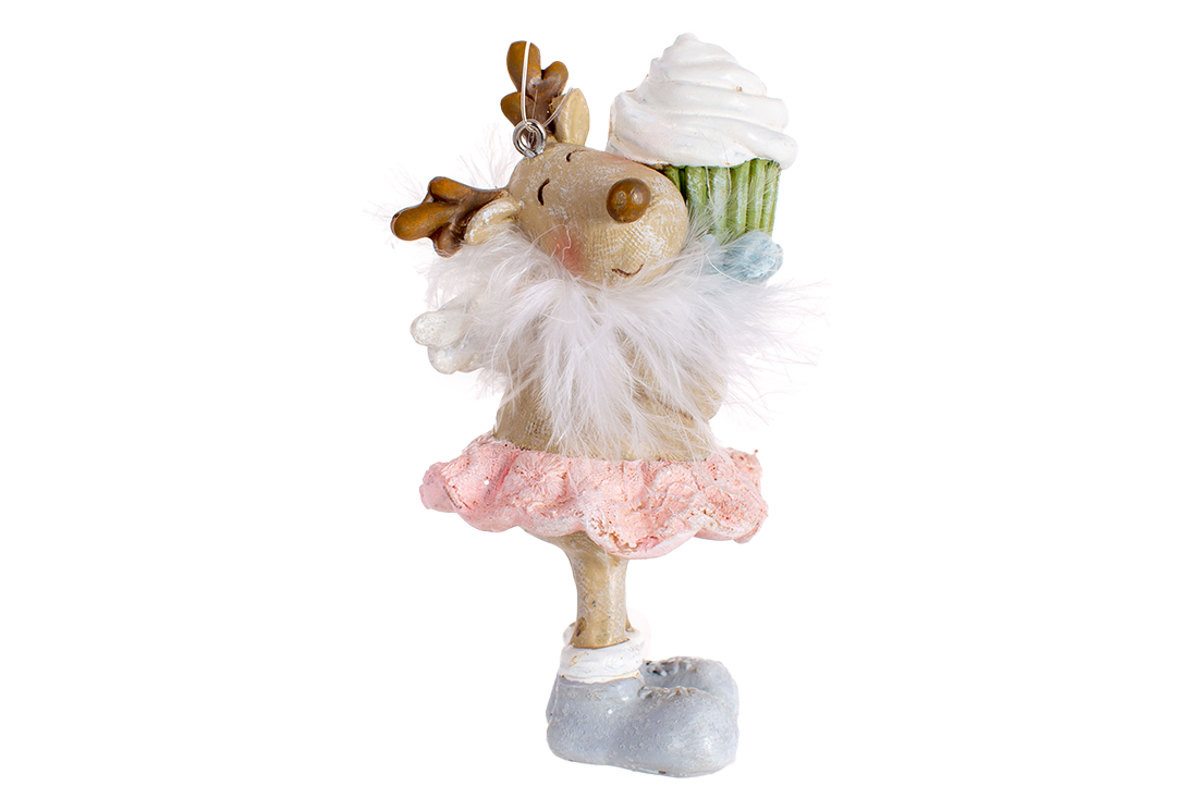 Декор підвісний Олень у рожевій спідничці з тістечком, 10.5см