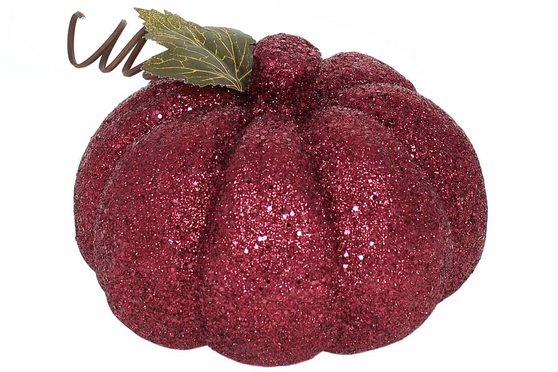 Декор Гарбуз 14.5см з гліттерним покриттям, колір - бордо