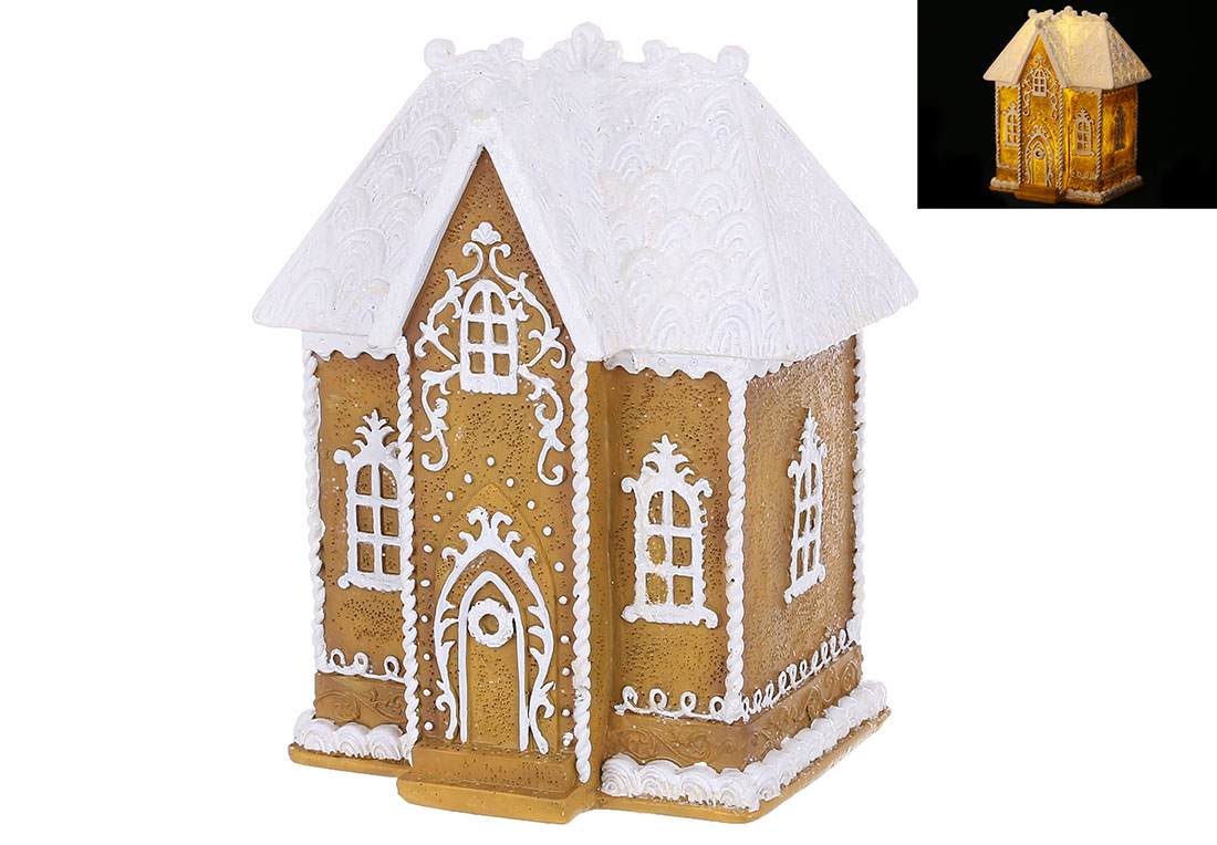 Декоратина фігура Пряничний будиночок з підсвічуванням LED 12.5*9.5*15см, колір - імбирно-коричневий з білим