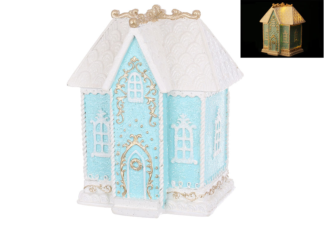 Декоратина фігура Зефірний будиночок з підсвічуванням LED 12.5*9.5*15см, колір - блакитний з білим