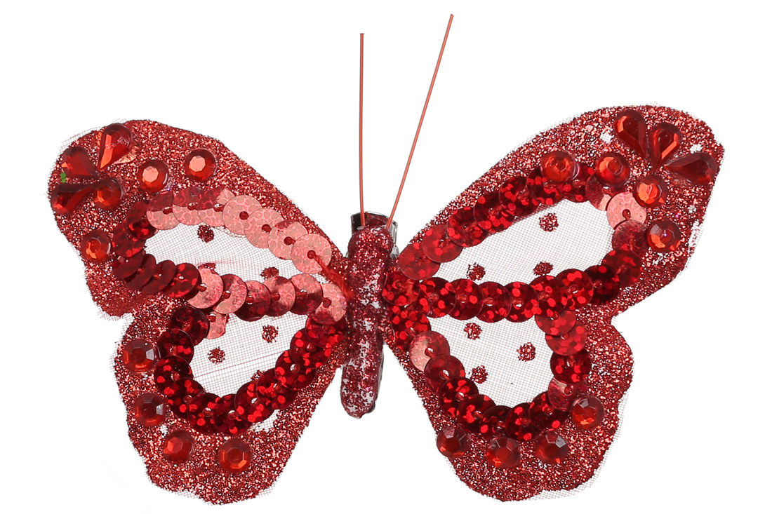 Декоративний метелик на кліпсі 11см, колір - червоний