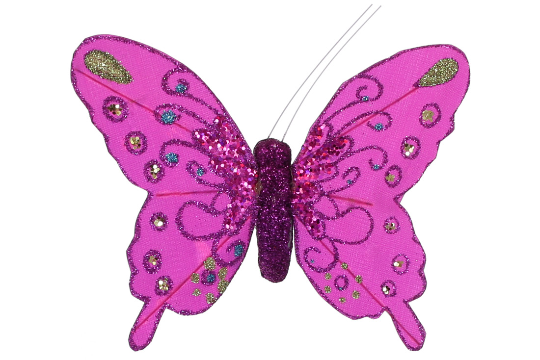 Декоративний метелик на кліпсі 14см, колір - фіолетовий