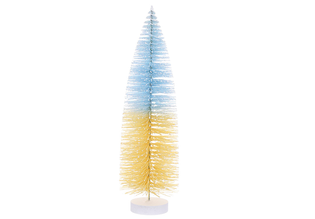 Декоративна Ялинка на дерев'яній підставці, 7*26см, колір - жовтий з блакитним глітером