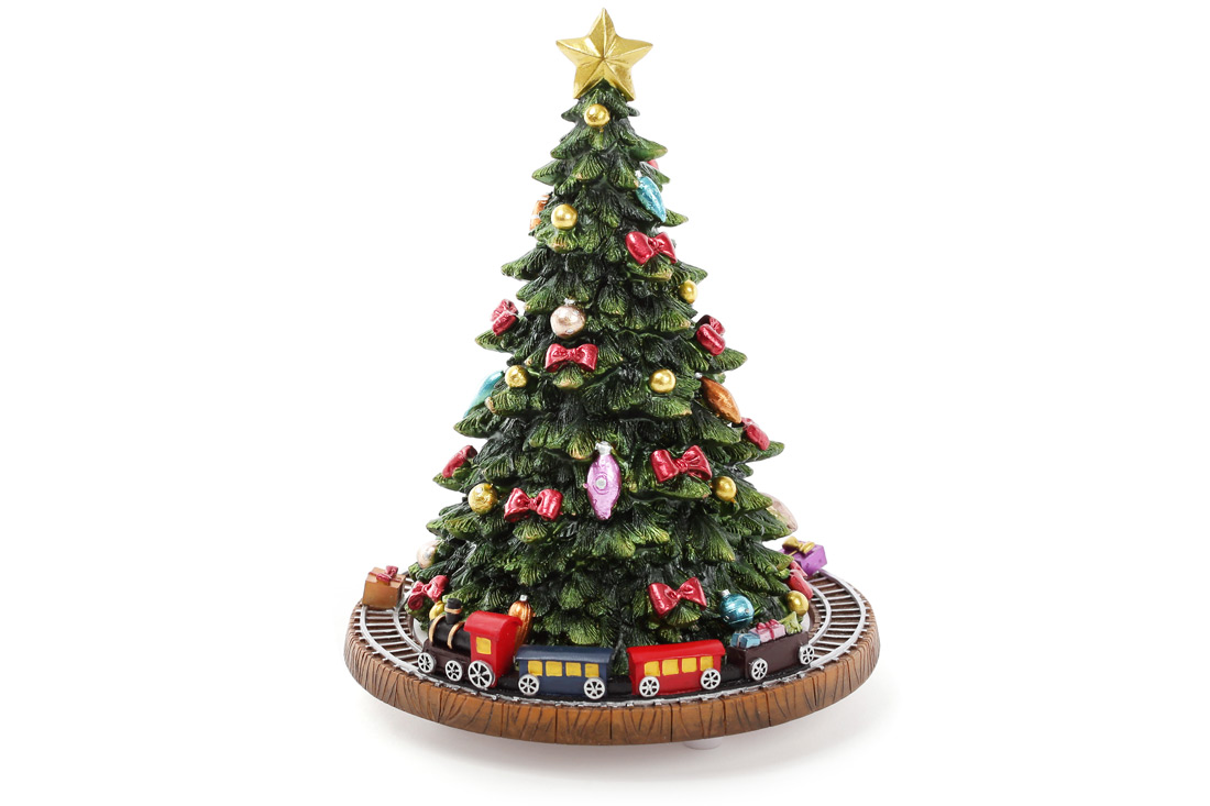Декоративна Ялинка з поїздом 18.5см, що рухається, з музикою "Happy New Year" на заводному механізмі